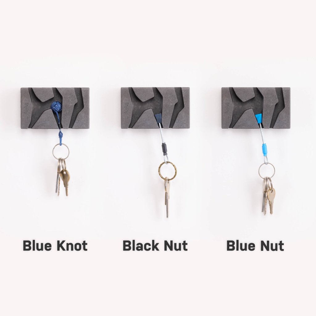 Mini věšák na klíče od české značky FujFuj vyrobený z betonu. Moderní design hodící se do každého interiéru skvěle kontrastuje s bílou zdí. Držák obsahuje několik spár do kterých je možné vkládat mini vklíněnce nebo uzlíky. Vyrobeno v ČR.