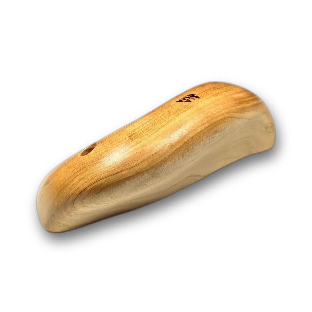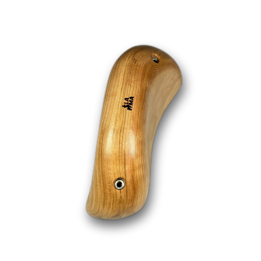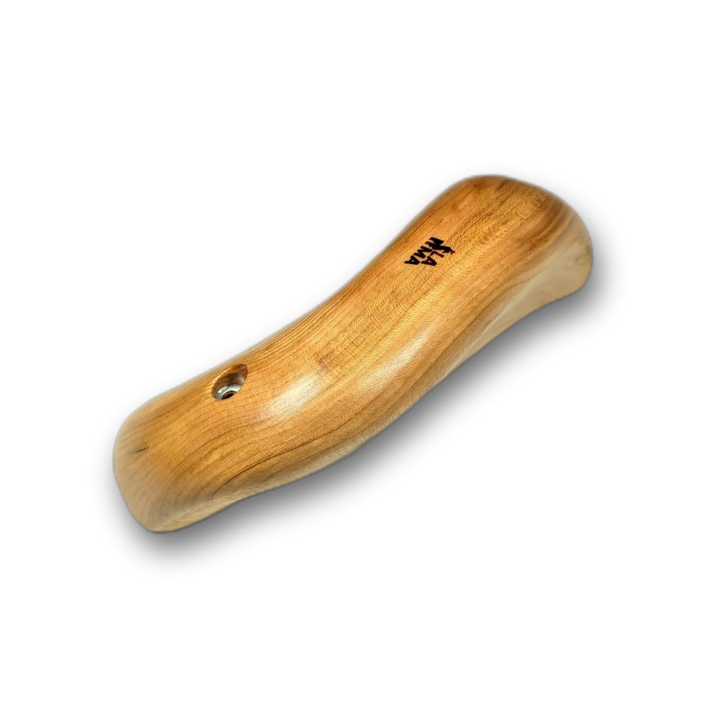 Ručně vyráběné madlo ze dřeva třešně. Hloubka chytu je cca 80 mm, velice pozitivní obouruční chyt, vhodný jako začátek nebo top bouldrů. Dá se také použít jako pozitivní stisk.