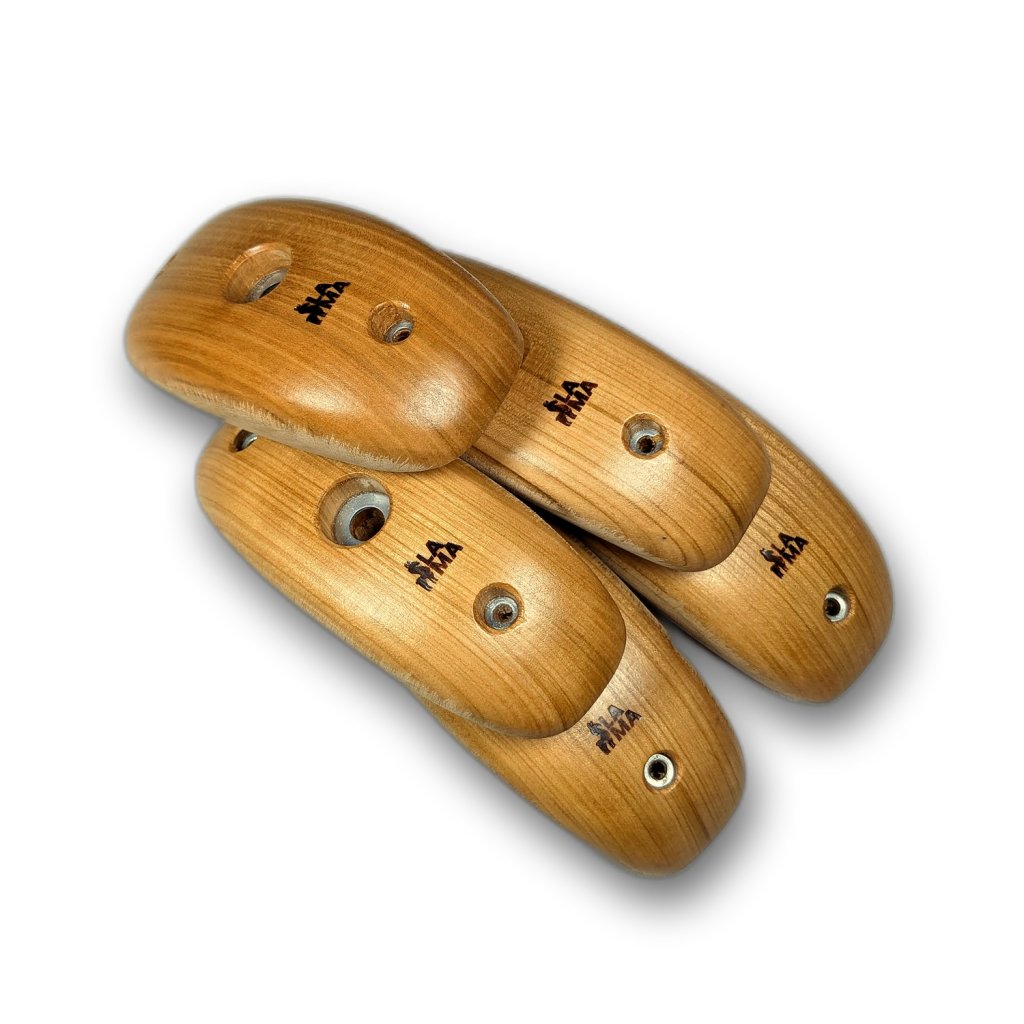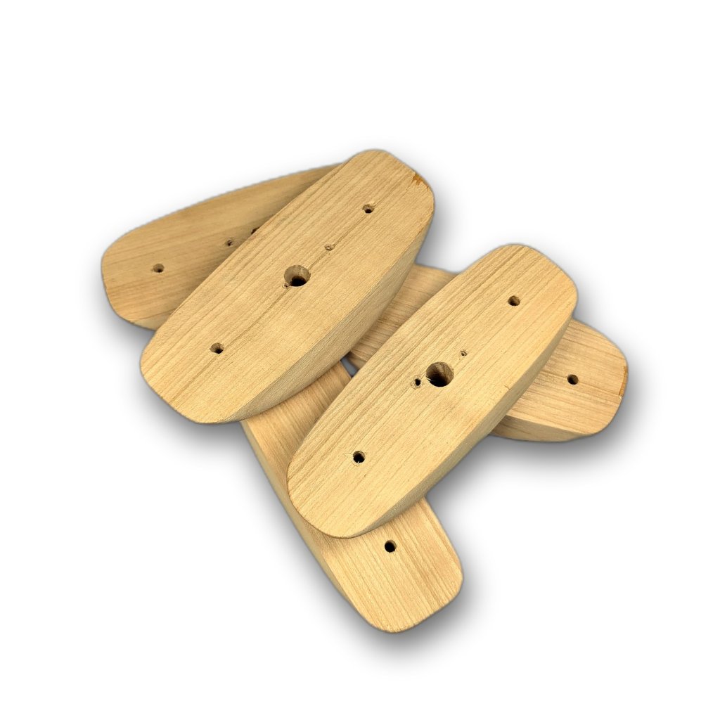 Ručně vyráběná sada 5 pozitivních stisků ze dřeva třešně. Hloubka chytu je cca 30 mm, sklon chytu pozitivních cca 15°
